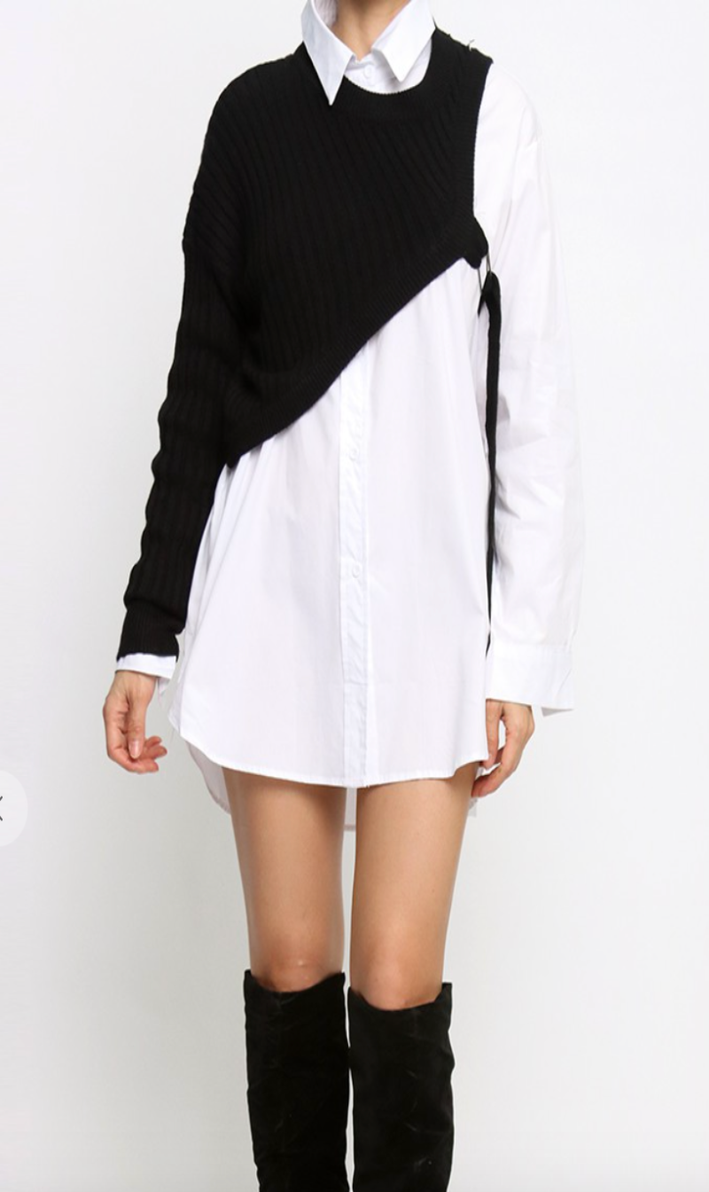 Black Assymetrical Cardigan Crop Top w//Classic Button Down Blouse